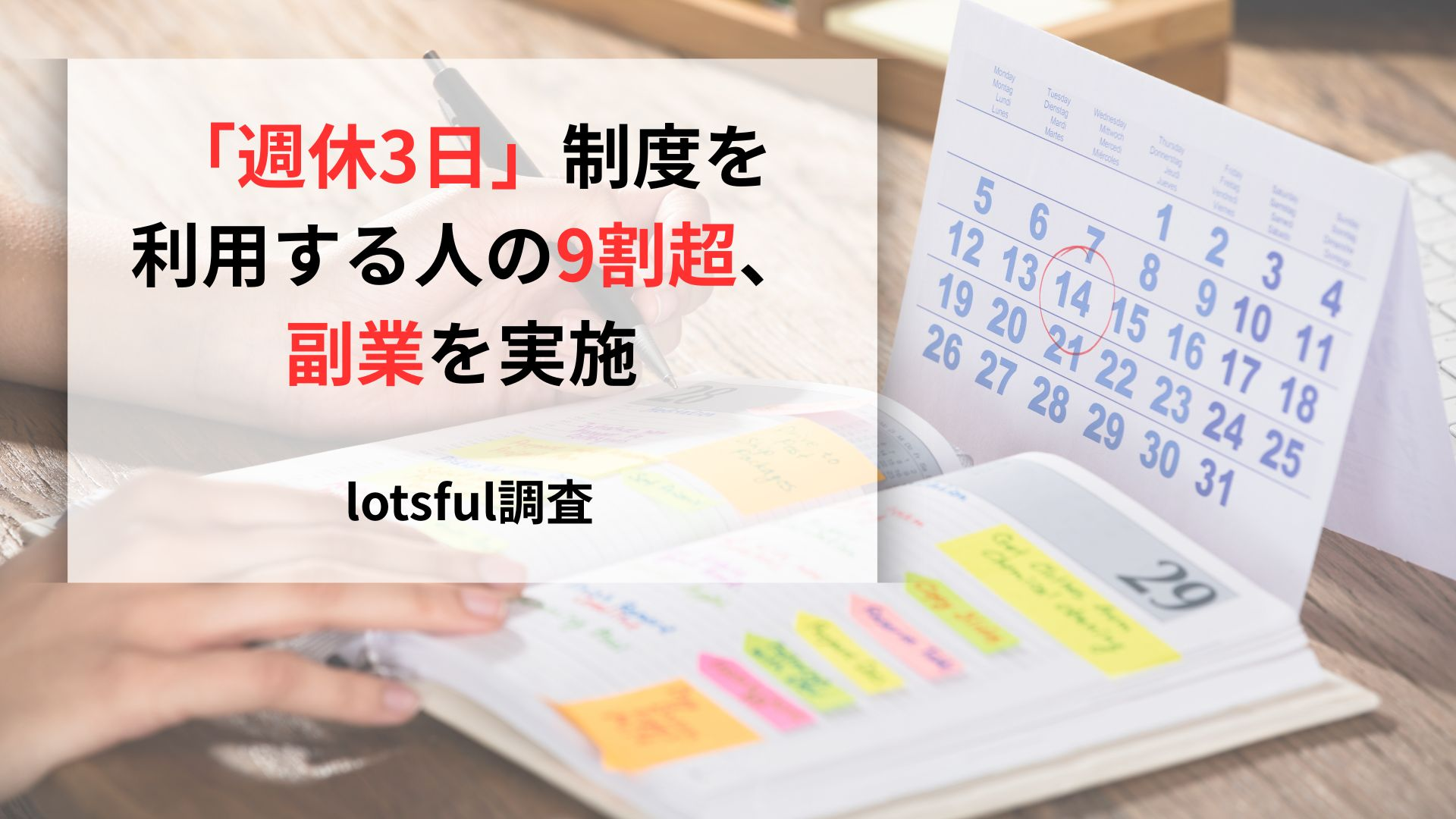 「週休3日」制度を利用する人の9割超、副業を実施 lotsful調査