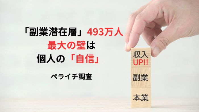 「副業潜在層」493万人、最大の壁は個人の「自信」 ペライチ調査
