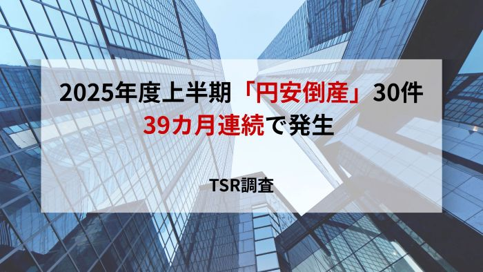 2025年度上半期「円安倒産」30件、39カ月連続で発生 TSR調査