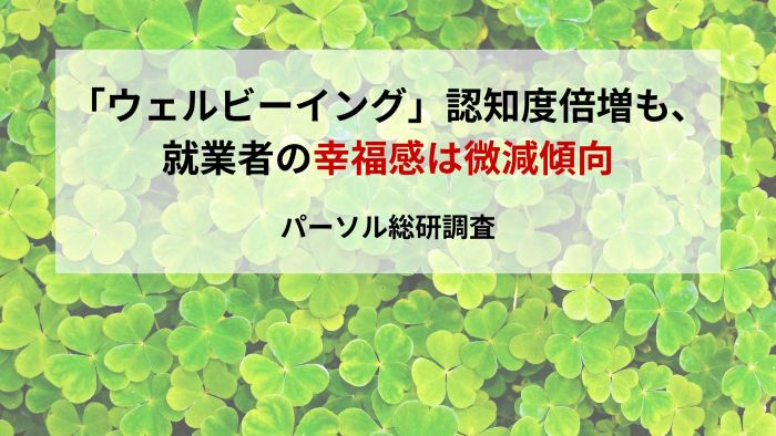 「ウェルビーイング」認知度倍増も、就業者の幸福感は微減傾向 パーソル総研調査