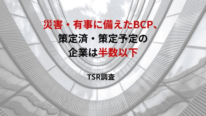 災害・有事に備えたBCP、策定済・策定予定の企業は半数以下 TSR調査