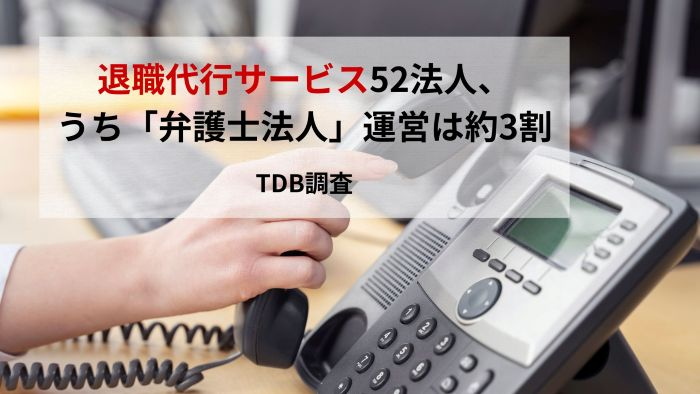 退職代行サービス52法人、うち「弁護士法人」運営は約3割 TDB調査
