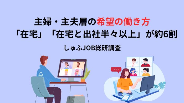 主婦・主夫層の希望の働き方「在宅」「在宅と出社半々以上」が約6割 しゅふJOB総研調査