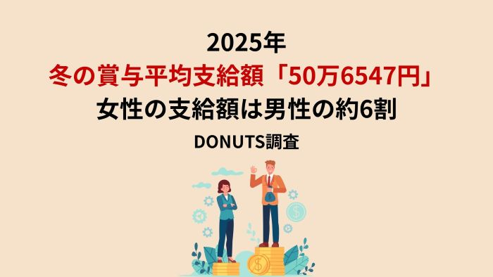 2025年冬の賞与平均支給額「50万6547円」女性の支給額は男性の約6割 DONUTS調査