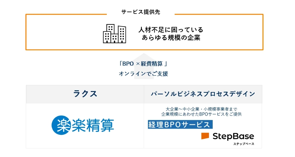 出典元:パーソルビジネスプロセスデザイン、ラクスとあらゆる企業の人材不足解消にむけて経理領域のDX推進を目的とした業務提携を開始(パーソルビジネスプロセスデザイン株式会社)