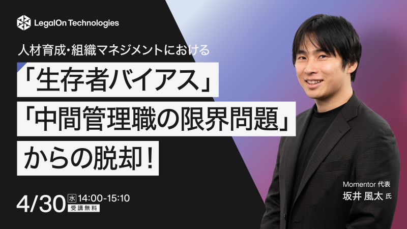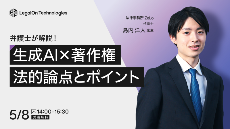 - 以下の事項につきあらかじめご了承のうえお申込みください。 株式会社LegalOn Technologies(以下「当社」という)と同業他社に所属される方や法律事務所に所属される方のご参加はご遠慮いただいております。 講義の内容は講師に一任をしており、当社は監修等を行っておりません。 講義内容へのご質問は、セミナーお申込み時点及びセミナー開催時間内に受け付けいたします。セミナー終了後にいただいたご質問へはお答えできません。また、セミナーお申込み時点及びセミナー開催時間内にいただいたご質問であっても、全てのご質問にお答えすることをお約束するものではありません。 お申込み情報に不備がある場合、参加をお断りさせていただく場合がございます。各項目を正しくご入力の上、お申込みくださいますようお願いいたします。 本セミナーに関し、予告なくセミナータイトル等を変更させていただく場合がございます。