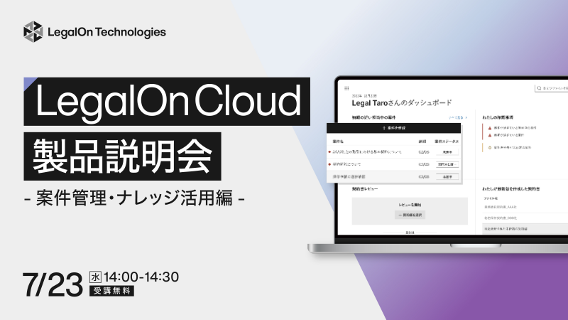 前日正午までに案内メールが届かない方は、お手数ですが、seminar@legalontech.jpまでお問合せください。 - 主催企業