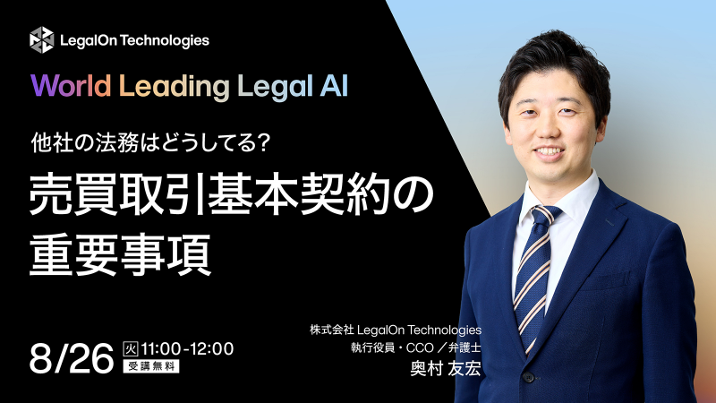 8/26(火)11時~「他社の法務はどうしてる? 売買取引基本契約の重要事項 AIエージェント活用も解説!」