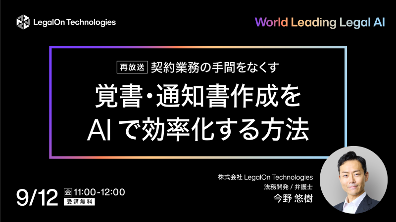 9/12(金)11時~「【好評につき再放送!】契約業務の手間をなくす 覚書・通知書作成をAIで効率化する方法」