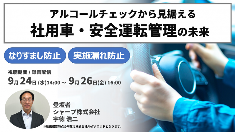 アルコールチェックから見据える「社用車・安全運転管理」 業務負担軽減の事例ご紹介(9/24~26開催)
