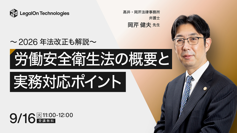 - 以下の事項につきあらかじめご了承のうえお申込みください。 株式会社LegalOn Technologies(以下「当社」という)と同業他社に所属される方や法律事務所に所属される方のご参加はご遠慮いただいております。 講義の内容は講師に一任をしており、当社は監修等を行っておりません。 講義内容へのご質問は、セミナーお申込み時点及びセミナー開催時間内に受け付けいたします。セミナー終了後にいただいたご質問へはお答えできません。また、セミナーお申込み時点及びセミナー開催時間内にいただいたご質問であっても、全てのご質問にお答えすることをお約束するものではありません。 お申込み情報に不備がある場合、参加をお断りさせていただく場合がございます。各項目を正しくご入力の上、お申込みくださいますようお願いいたします。 本セミナーに関し、予告なくセミナータイトル等を変更させていただく場合がございます。