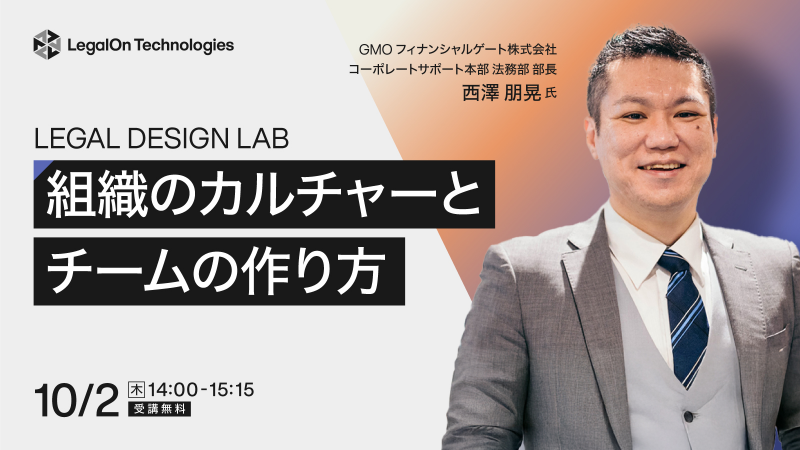 10/2(木)14時~「法務組織の「カルチャーとチーム」の作り方 ~自走する組織の仕組み化論~」