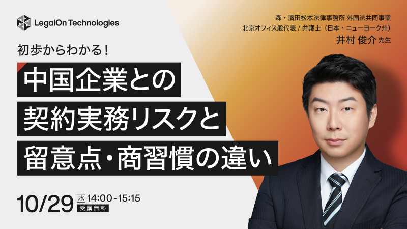 10/29(水)14時~「初歩からわかる! 中国企業との契約実務 リスクと留意点・商習慣の違い」