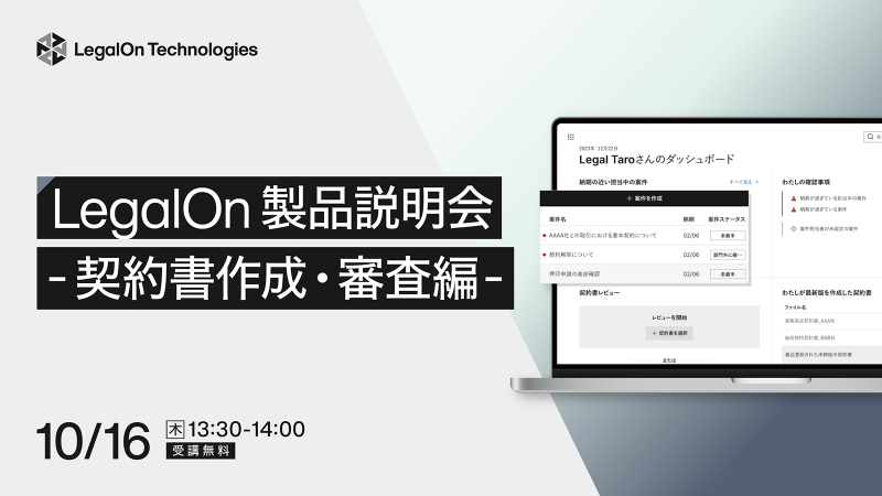 10/16(木)13時半~「LegalOn 製品説明会-契約書作成・審査編-」