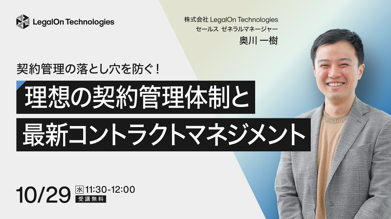 10/29(水)11時半~「契約管理の落とし穴を防ぐ!理想の契約管理体制と最新コントラクトマネジメント」