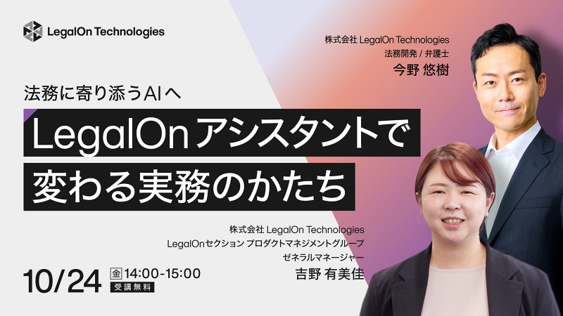 10/24(金)14時~「法務に寄り添うAIへ LegalOnアシスタントで変わる実務のかたち」
