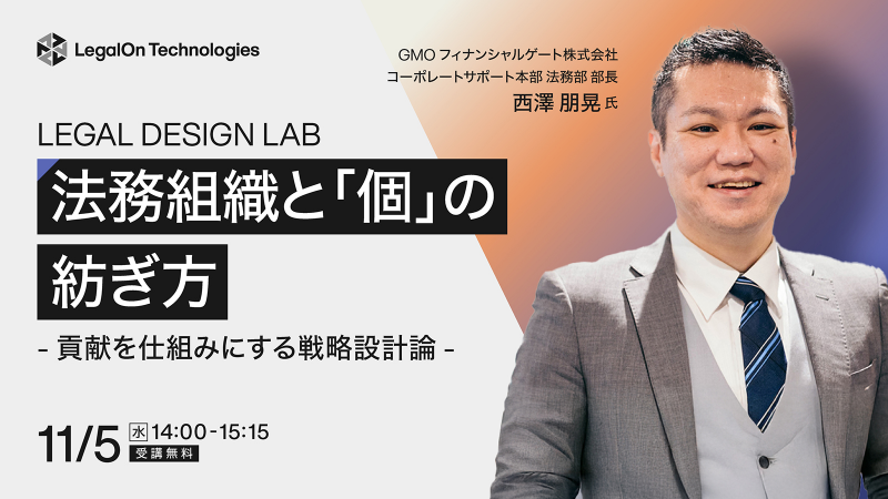11/5(水)14時~「法務組織と「個」の紡ぎ方 ~貢献を仕組みにする戦略設計論~」
