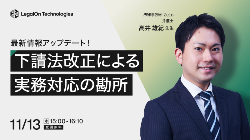 11/13(木)15時~「最新情報アップデート!下請法改正による実務対応の勘所」