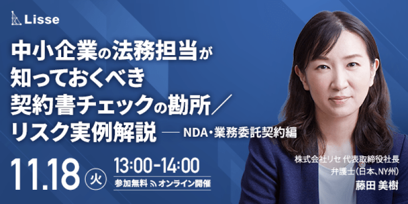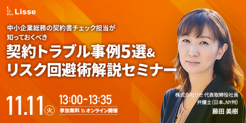 (11/11)中小企業総務の契約書チェック担当が知っておくべき 契約トラブル事例5選&リスク回避術解説セミナー