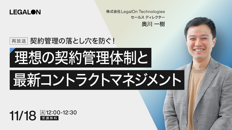 11/18(火)12時~「契約管理の落とし穴を防ぐ!理想の契約管理体制と最新コントラクトマネジメント」